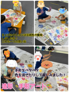 夏休みのある日、児童たちと一緒に手形アートを楽しみました🎨🖐️👧👦